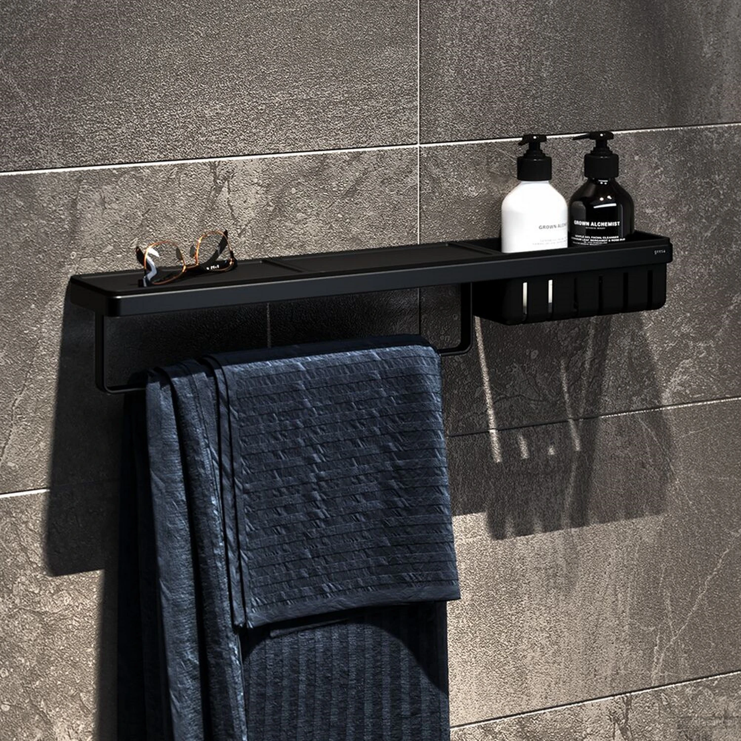 Met dit planchet heeft u drie producten in één. Het is namelijk niet alleen een planchet, maar ook een handdoekrek en douchemand. Zo heeft u veel extra opbergruimte. In de mand en op het planchet kunt u bijvoorbeeld flessen kwijt, of een spons. Onder aan het planchet zit het handdoekrek. Niet alleen functioneel en praktisch, maar ook mooi en stijlvol. Door zijn zwarte kleur past hij mooi in een stoere of industriële woonstijl.