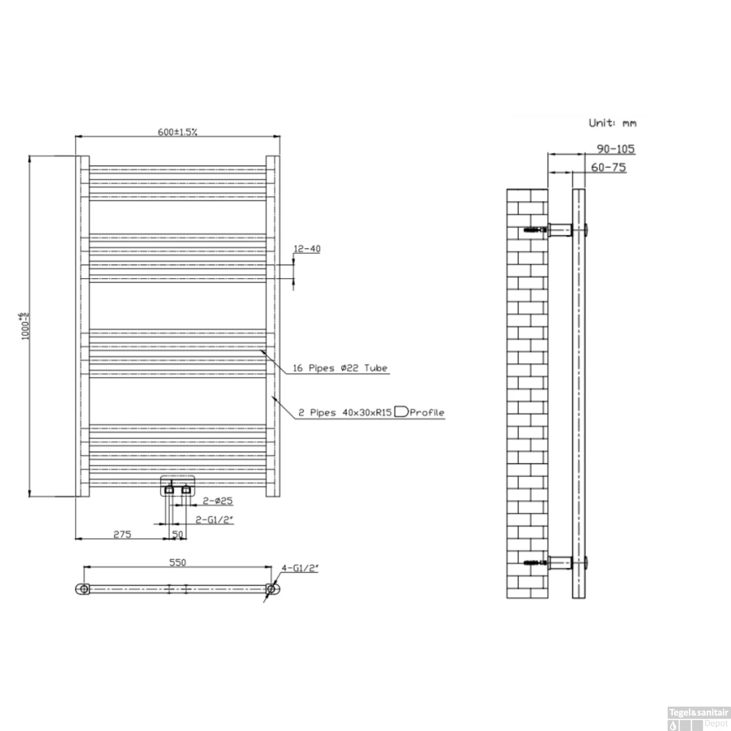 De radiator is gemaakt van hoogwaardig staal, hierdoor is een maximale warmte-afgifte gegarandeerd. Hij heeft een formaat van 60x100cm en een capaciteit van 424 Watt. Daarnaast is de radiator uitgerust met een middenaansluiting en kan met behulp van de aansluitset aangesloten worden op vrijwel iedere aansluiting. Verder is de radiator voorbereid om op 6 punten aangesloten te kunnen worden.