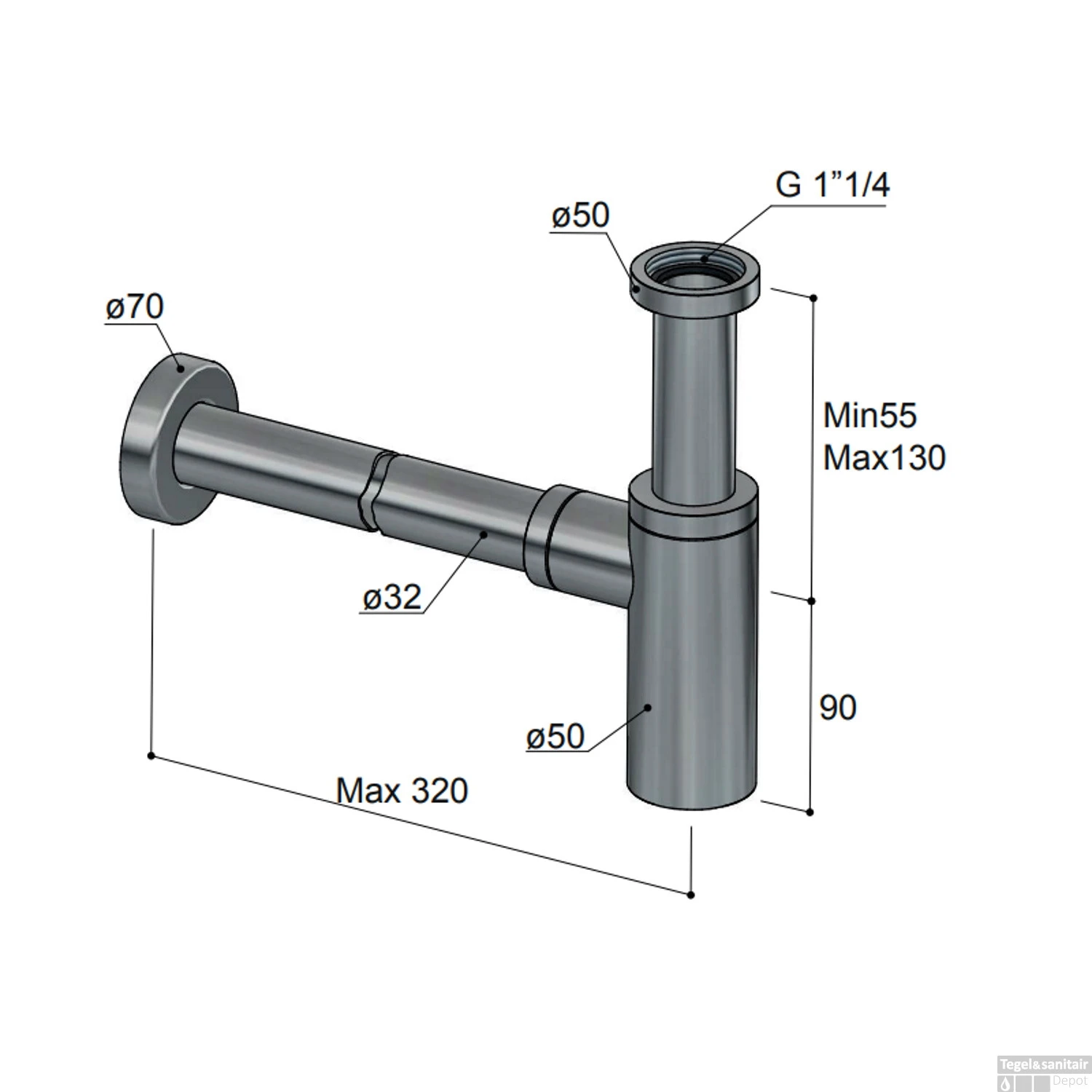 Het is maximaal 32 cm diep, en is ook in hoogte verstelbaar. De draadaansluiting is 1″1/4 en de sifon komt inclusief rozet voor een mooie afwerking op de muur. Met deze sifon zorgt u voor een strakke en stoere uitstraling. U krijgt 10 jaar garantie op deze sifon.