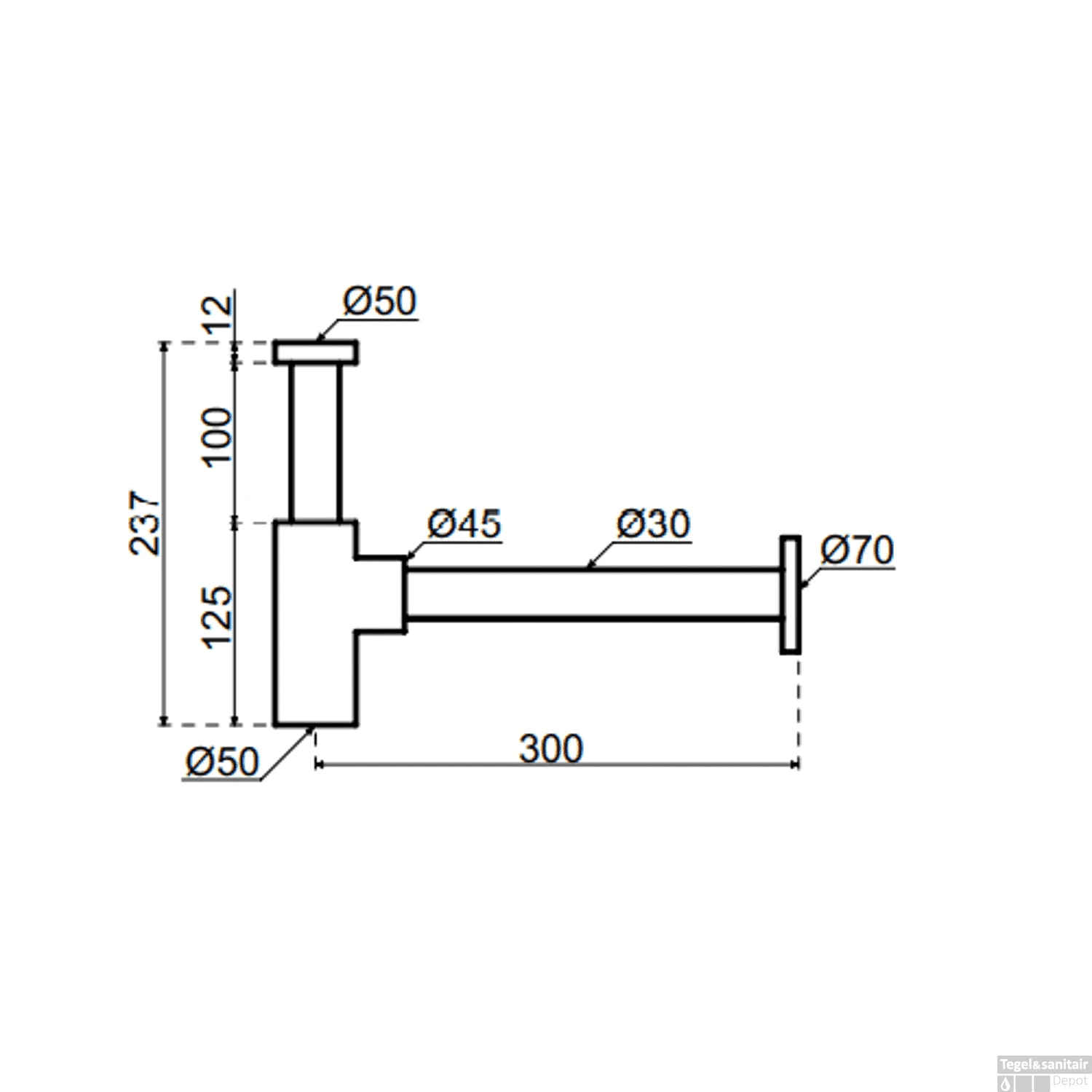 Deze strak vormgegeven universele sifon is een prachtige eyecatcher. De muurbuis heeft een diameter van 32 millimeter.