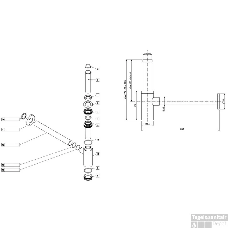 Deze strak vormgegeven universele sifon is een prachtige eyecatcher. De muurbuis heeft een diameter van 32 millimeter.