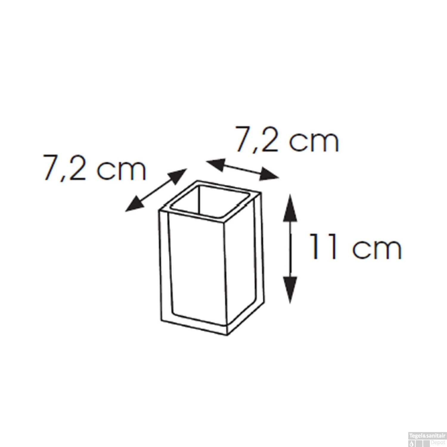 De tandenborstelhouder heeft een hoogte van 11 cm, een breedte van 7.2 cm en een diepte van 7.2 cm.