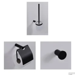 Met een toilet accessoire set heeft u in één keer uw toilet voorzien van toiletgarnituur. De set bestaan uit een wc borstel, toiletrolhouder en handdoekhaak. De accessoires zijn gemaakt van mat zwart messing. Dit materiaal is zeer geschikt om te gebruiken in badkamers en natte ruimtes.