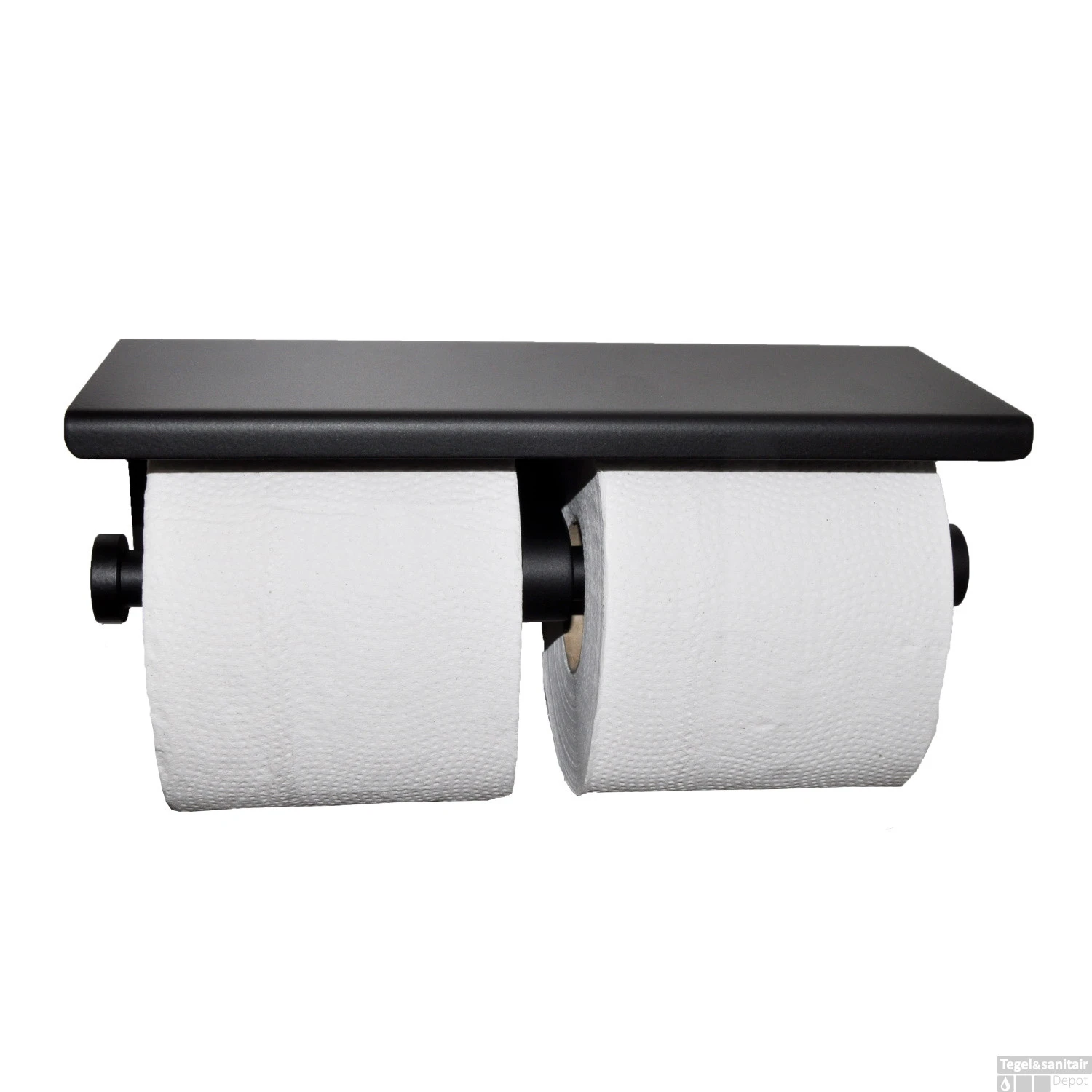 Toiletrolhouder Wiesbaden Dubbel Met Plateau Legplankje Mat Zwart