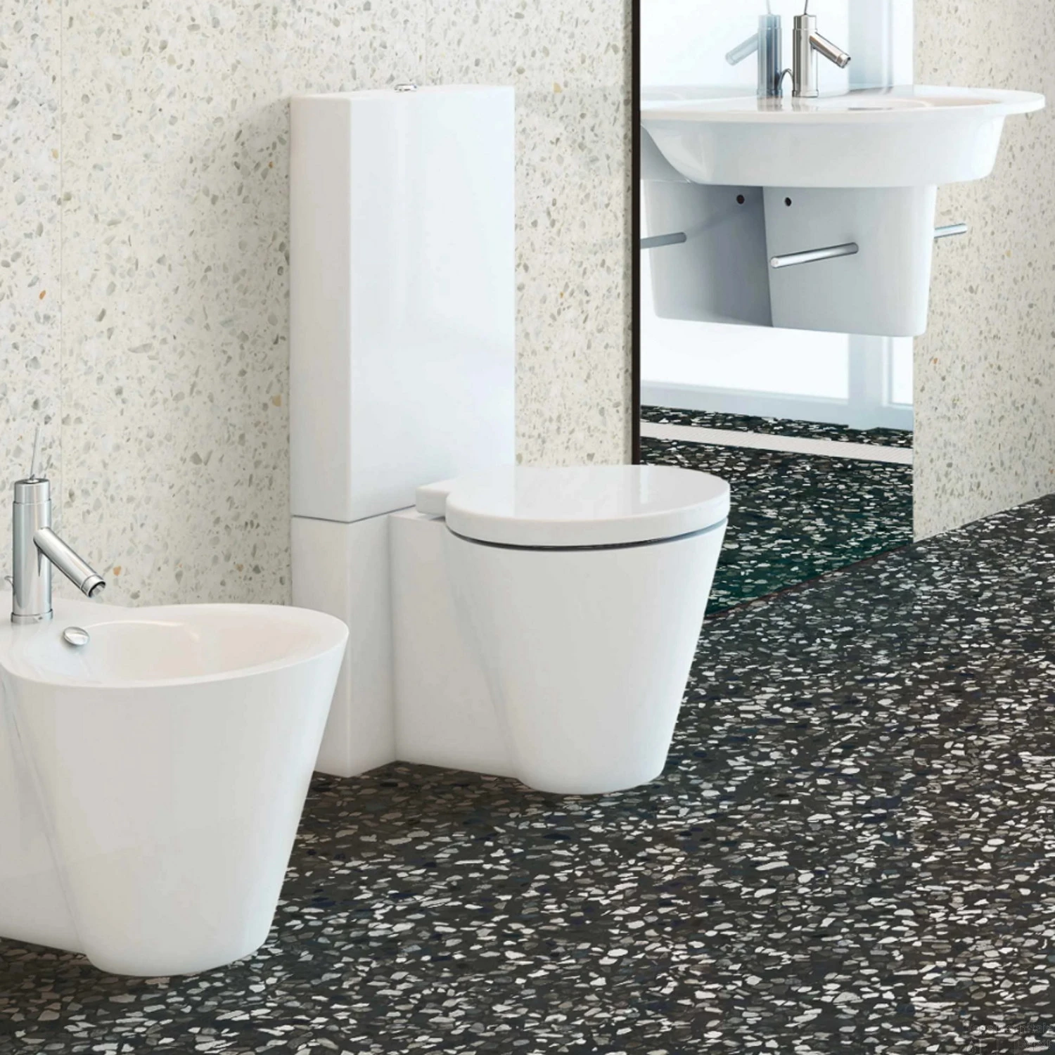 De terrazzo tegels zijn nooit hetzelfde wat voor het speelse retro effect zorgt in uw badkamer. Met zijn matte afwerking is de tegel makkelijk schoon te maken en kan hij gecombineerd worden met een hele hoop andere tegels.