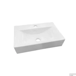 De Wastafel Best Design Train rechthoek keramiek 45×30,5×10 cm is een mooie strak design wastafel met een eigentijds tintje. De waskom heeft geen vier dezelfde zijde. De korte kanten van wastafel lopen namelijk geleidelijk naar beneden met een boog. Onderin de wasbak zit een afvoergat en boven op de wastafel zit in het midden een kraangat. De wastafel heeft geen overloop.