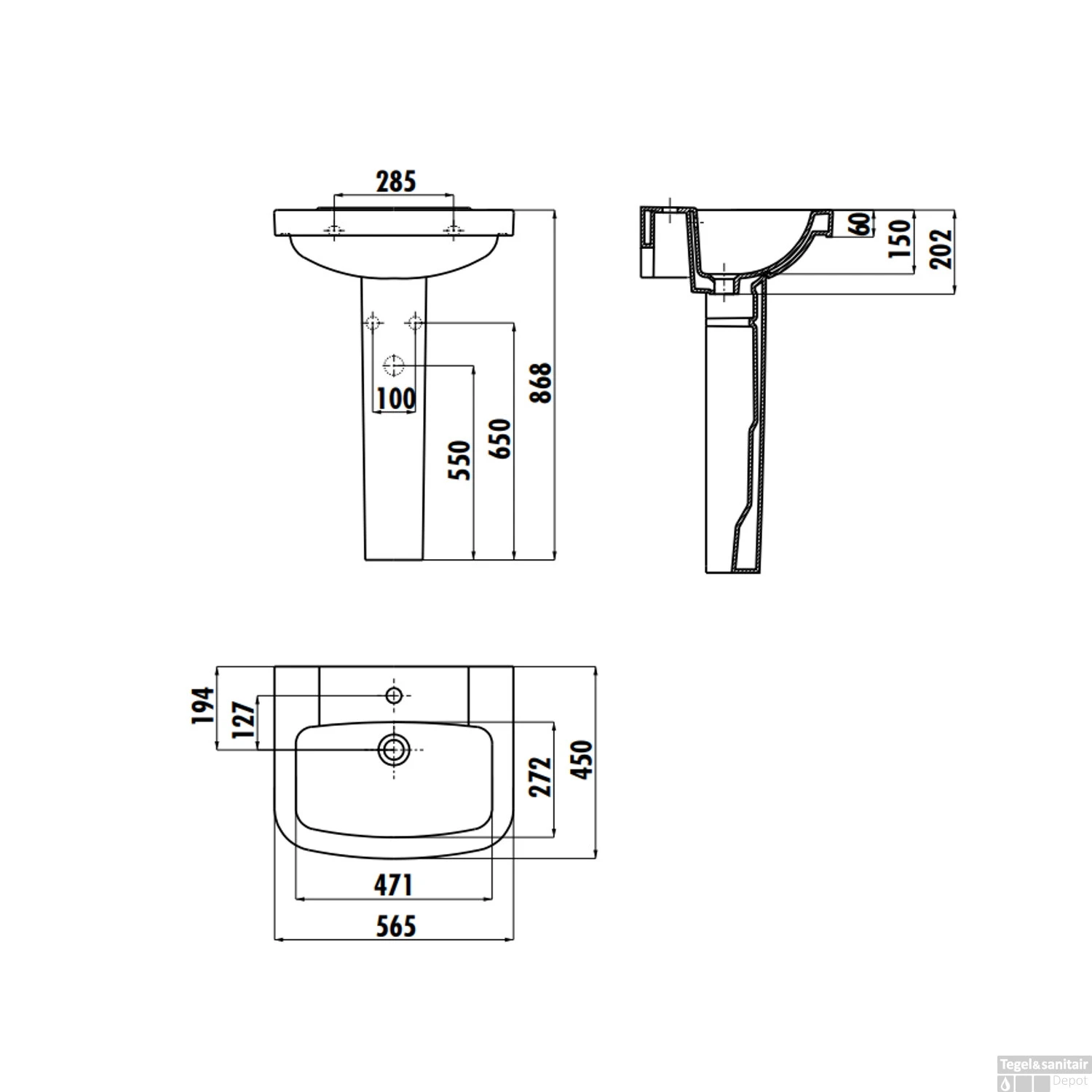 Specificaties Wastafel Boss & Wessing 56x45cm Keramiek Wit Met Kraangat