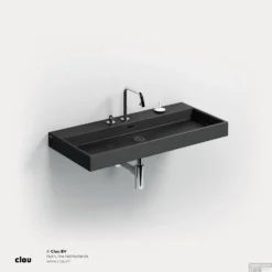 Wastafel Clou Wash Me 90x42x8 cm Keramiek Mat Zwart met 3 voorbewerkte kraangaten zonder plug