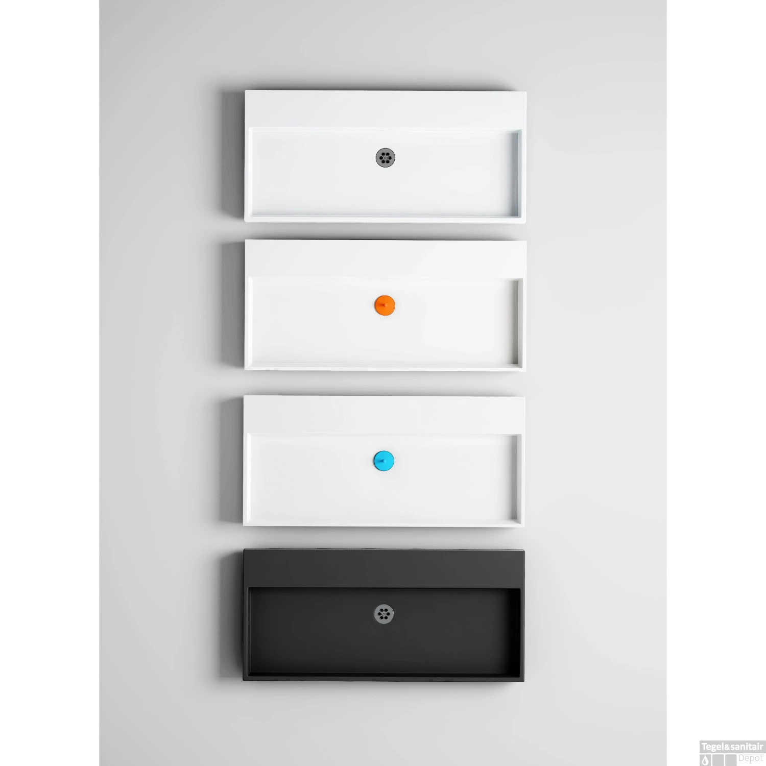 U kan de wasbak zowel hangend aan de muur plaatsen of liggend op een wastafelmeubel. De wasbakken zijn standaard zonder kraangat. Wilt u geen kraangat? Dan houd u de wasbak zoals deze nu is. Wilt u 1 kraangat? Dan kan u doormiddel van de voorbewerkte rand aan de onderkant heel makkelijk een kraangat maken. De gaten ziet u aan de bovenkant niet zitten.