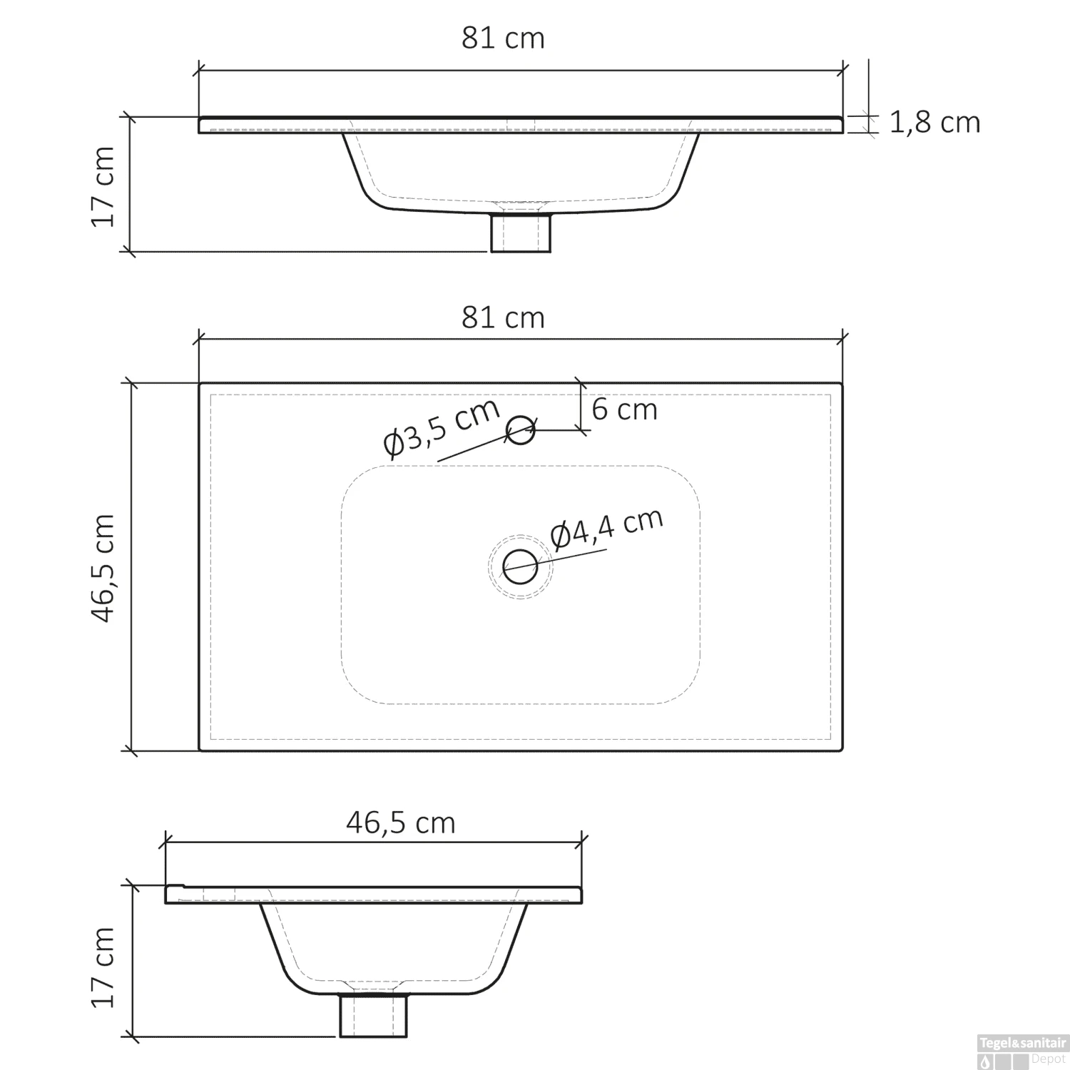 Specificaties Wastafel Differnz Sofi 81 x 46,5 CM Wit: