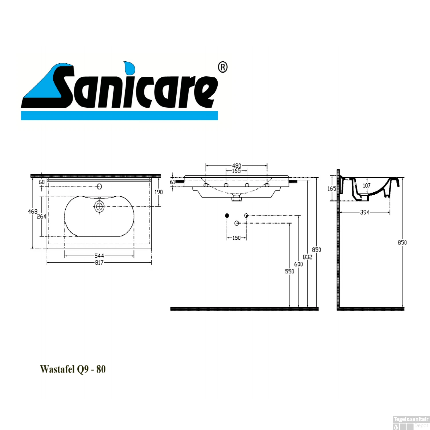Deze wastafel van het merk Sanicare past perfect in uw badkamer. De wastafel behoort tot Sanicare’s Q9-serie en kent een strak en modern design waardoor die in iedere badkamer goed tot recht. Het product is gemaakt van keramiek en is wit van kleur.
