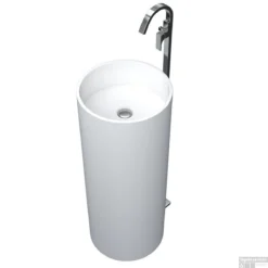 Wastafel Vrijstaand Crosstone Wendy 36x36x90 cm Solid Surface Rond Mat Wit