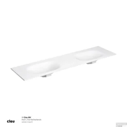 Dit wastafelblad van het merk Clou, komt uit de serie Hammock. Hij heeft een dubbele verzonken waskom met een breedte van 58 cm elk en die hebben allebei 3 voorbewerkte kraangaten. Op die manier hoeft u alleen maar het voorbewerkte gat door te tikken om uw kraan op de gewilde plaats te kunnen monteren.