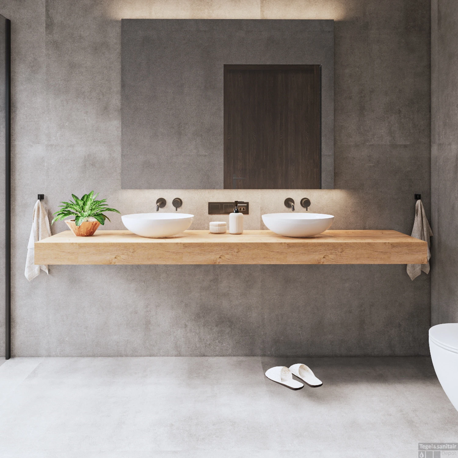 Wastafelblad Gliss Design Topdek 180×46 cm Ruw Gerookt Incl. 4 Ophangbeugels