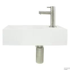 Fonteinset Differnz Ravo Beton En Handoekrek 38.5×18.5×9 Cm Licht Grijs Met Gebogen Kraan Mat Chroom