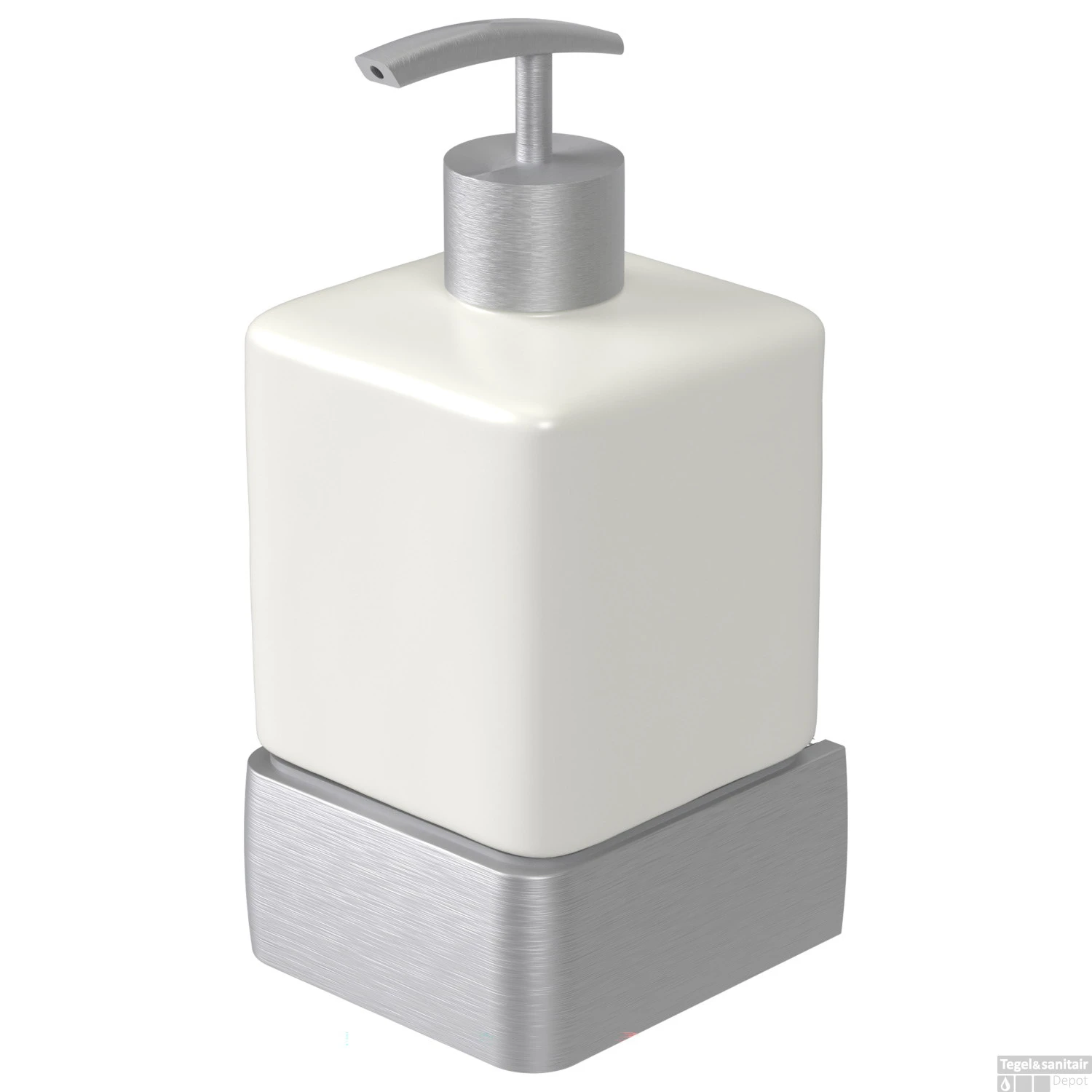 Deze zeepdispenser is van het merk Haceka en behoort tot de Aline Brushed-serie. Zoals de serienaam al doet vermoeden heeft deze zeepdispenser een geborstelde afwerking. De onder- en bovenzijde van het artikel zijn gemaakt van zilverkleurig aluminium, terwijl de rest is gemaakt van keramiek en wit van kleur is. De dispenser heeft een breedte van 7,4 cm, een hoogte van 15,4 cm en een diepte van 7,8 cm.